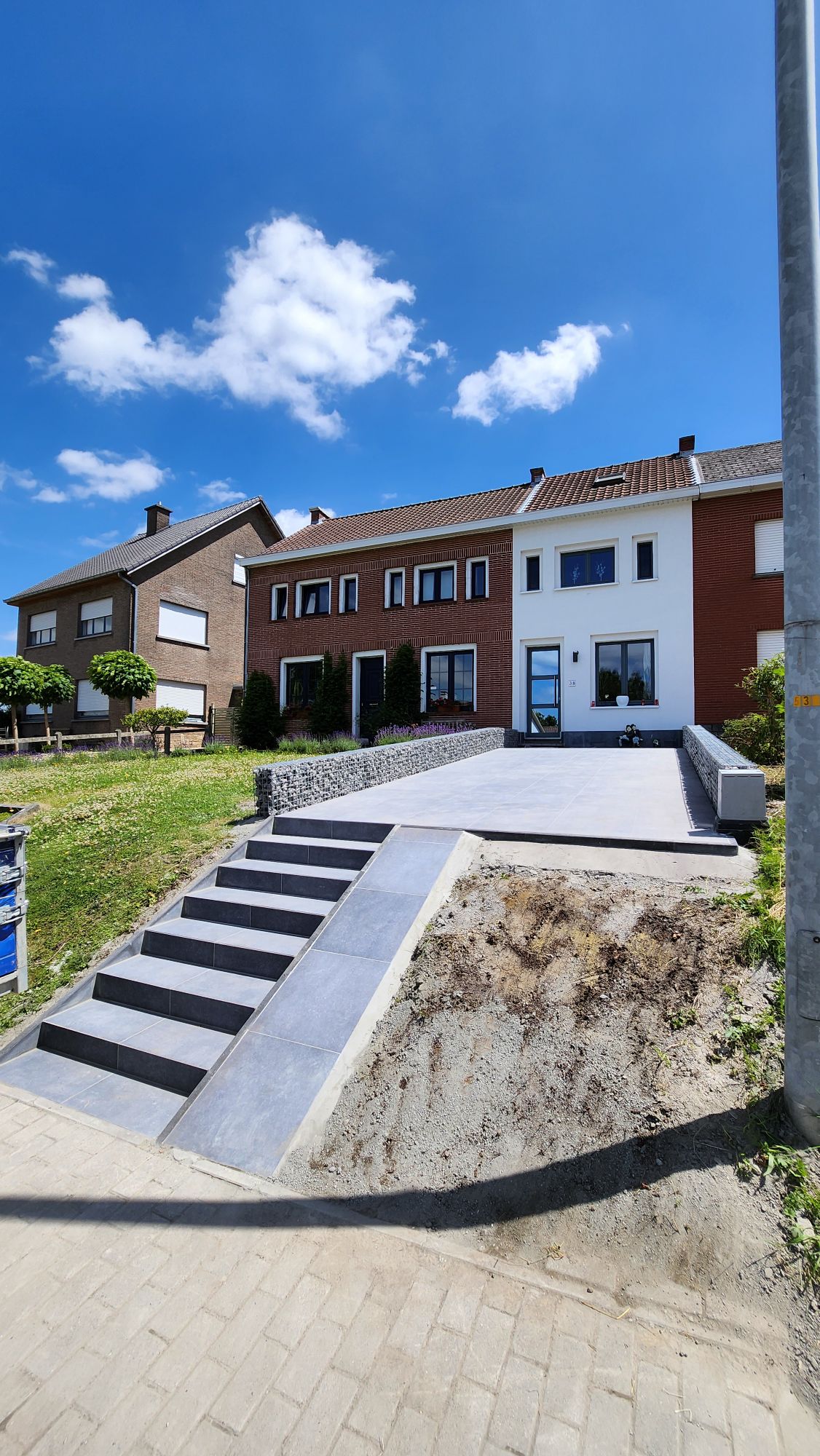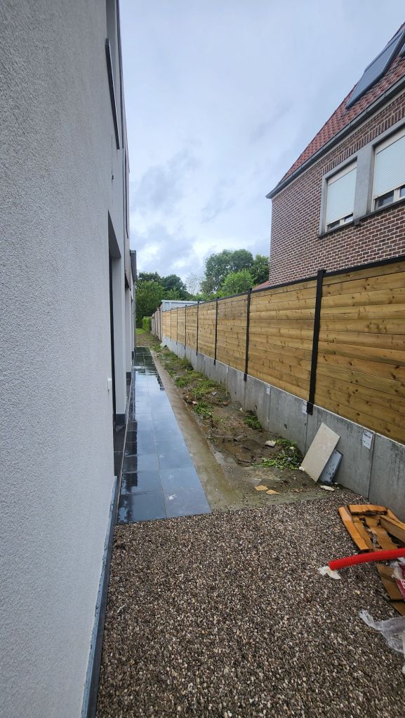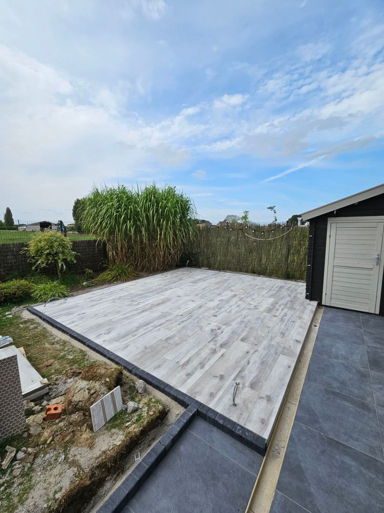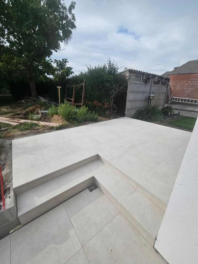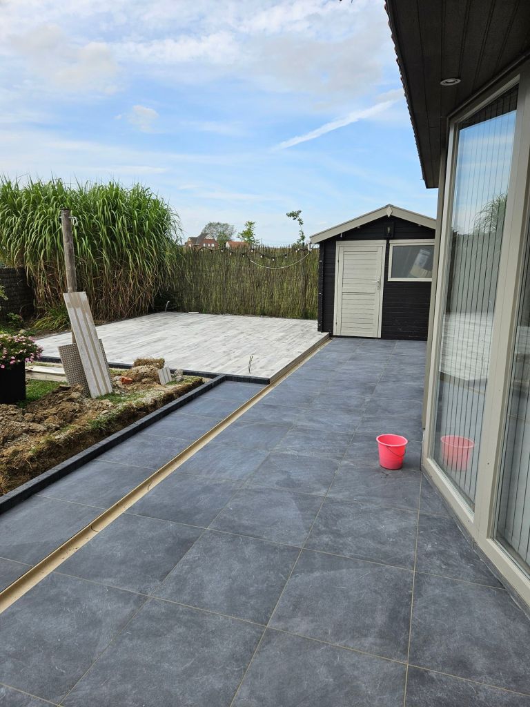 - Verhardingswerken: Het aanleggen van een nieuw terras, oprit en tuinpaden, waarbij we zorgen voor een duurzame fundering en een perfecte afwatering.