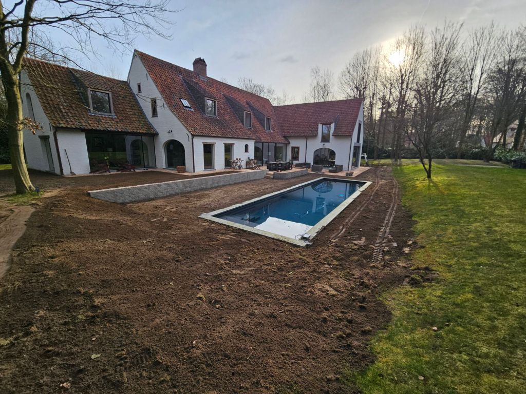 - Groenaanleg: Het egaliseren van de ondergrond en het vakkundig leggen van grasmatten voor een onmiddellijk groen en egaal resultaat.